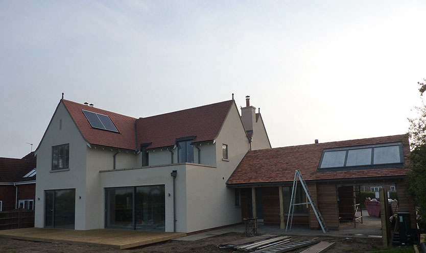 The house creates a spacious home on place of a cramped bungalow that suits a young family. It incorporates a number of renewable technologies including, solar thermal and solar photovoltaic panels and an air source heat pump.